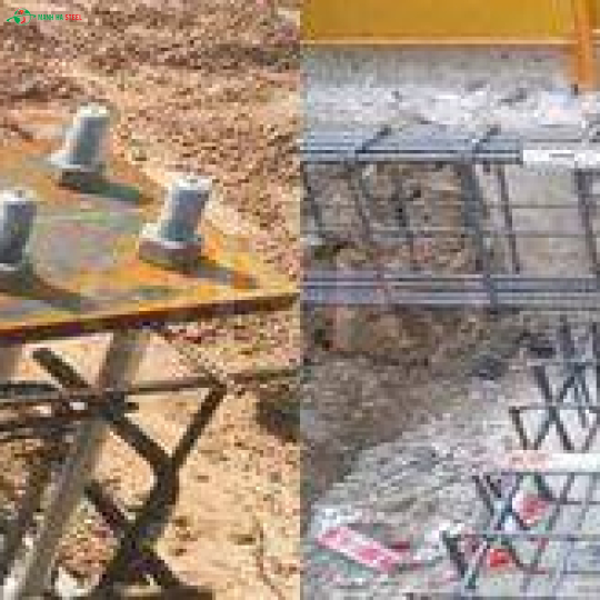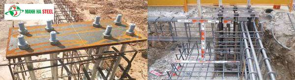 - Sử dụng dưỡng bu lông (bản mã) để định vị, cố định tạm bằng thép tròn D8 hoặc D10 trong cụm bu lông, liên kết với thép chủ trong dầm, cột.
