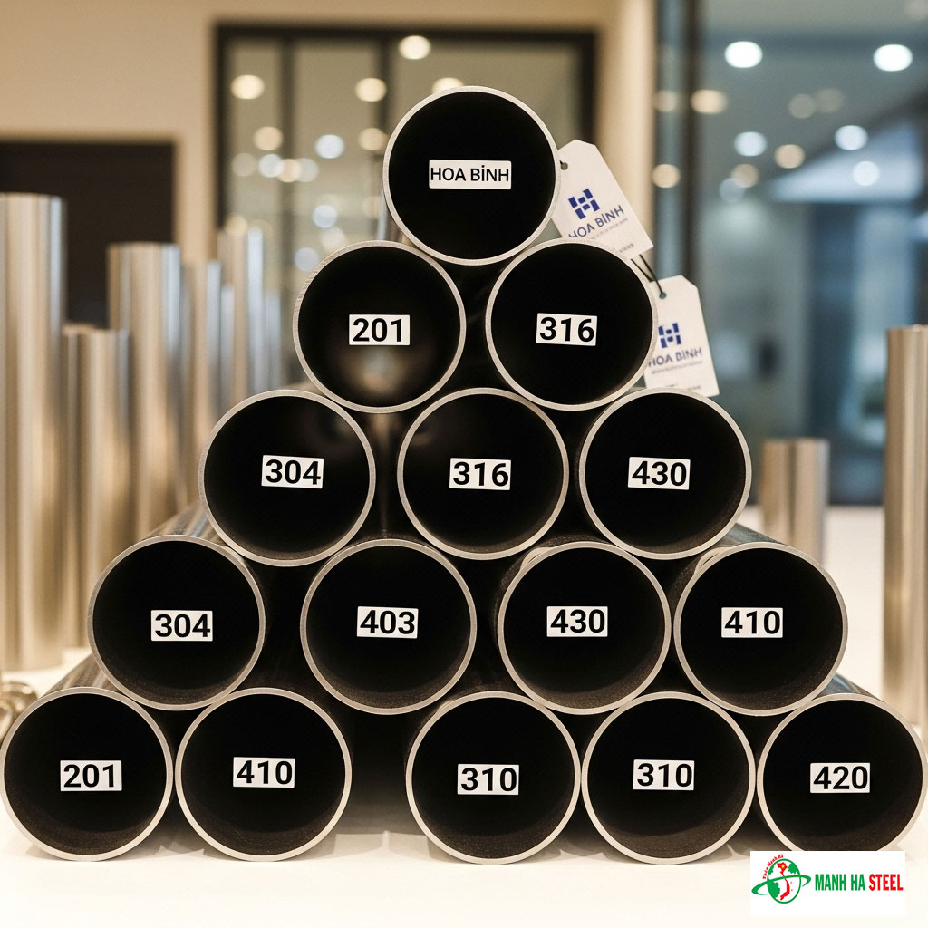Ống inox trang trí Hòa Bình 201, 304, 316, 403, 430, 410, 310, 420 là lựa chọn lý tưởng cho các công trình yêu cầu độ bền, tính thẩm mỹ và khả năng chống ăn mòn cao. Với sự đa dạng về mác thép, kích thước và ứng dụng, sản phẩm này đáp ứng mọi nhu cầu từ trang trí nội thất đến các công trình công nghiệp. Công ty TNHH Sản Xuất Tôn Thép Mạnh Hà cam kết mang đến sản phẩm chất lượng cao, giá cả cạnh tranh và dịch vụ chuyên nghiệp. Hãy liên hệ ngay với Đại lý inox để được tư vấn và báo giá chi tiết!