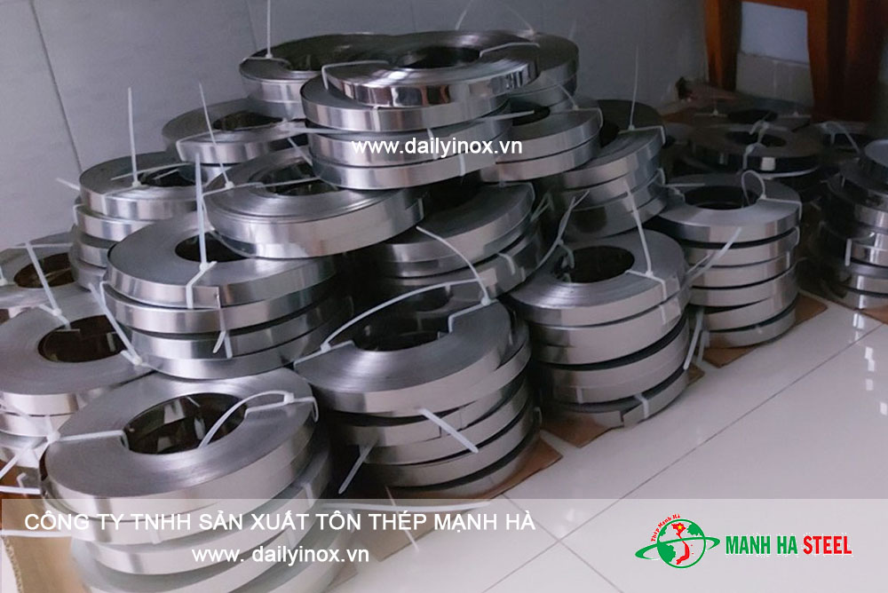 Công Ty TNHH Sản Xuất Tôn Thép Mạnh Hà luôn sẵn sàng gia công dây đai inox theo kích thước, độ dày, độ rộng và tiêu chuẩn kỹ thuật riêng biệt theo yêu cầu của khách hàng, đảm bảo đáp ứng tối đa nhu cầu sử dụng thực tế và đặc thù từng ngành nghề.