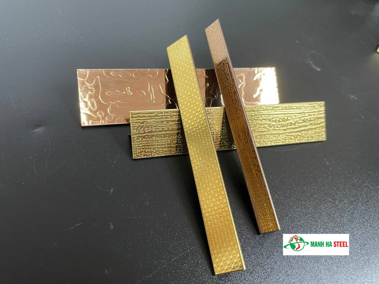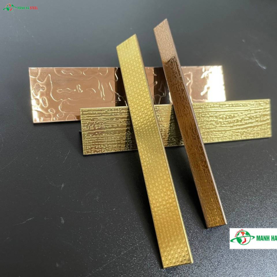 Thanh inox hoa văn do Inox Mạnh Hà cung cấp là sản phẩm inox trang trí cao cấp, được gia công tạo họa tiết độc đáo trên bề mặt bằng công nghệ khắc, in, hoặc dập hiện đại, kết hợp xử lý PVD cho màu sắc sang trọng và bền đẹp. Sản phẩm sở hữu độ bền cơ học cao, chống ăn mòn tốt, không bong tróc, dễ vệ sinh và duy trì vẻ thẩm mỹ lâu dài.