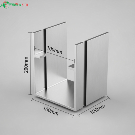 Kích thước 100x200x100mm nghĩa là chiều cao cánh U hai bên là 100mm, chiều rộng đáy U ở giữa là 200mm, giúp định hình chắc chắn và phù hợp nhiều công trình xây dựng hoặc kết cấu thép.