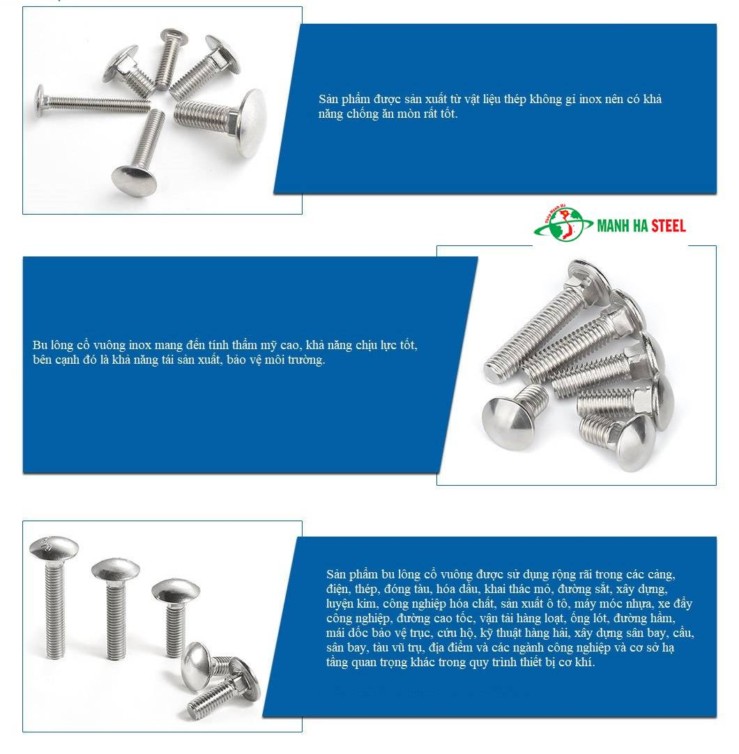 Tại sao nên chọn bulông đầu tròn cổ vuông inox 304 của Công Ty TNHH Sản Xuất Tôn Thép Mạnh Hà?