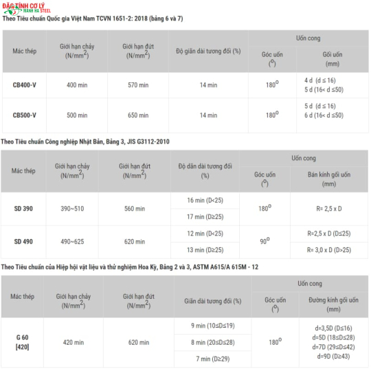 Mác thép: CB300-V, CB400-V, CB500-V, SD 295, SD 390, SD 490, G 40, G60,...