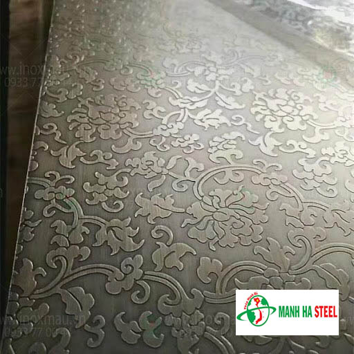 Inox tấm hoa văn là loại inox được gia công bề mặt để tạo ra các họa tiết, hoa văn trang trí tinh xảo, đa dạng, giúp tăng tính thẩm mỹ và giá trị sử dụng. Sản phẩm này thường được ứng dụng rộng rãi trong trang trí nội thất, ngoại thất, ốp tường, thang máy, quầy lễ tân, cửa ra vào và nhiều hạng mục kiến trúc khác.