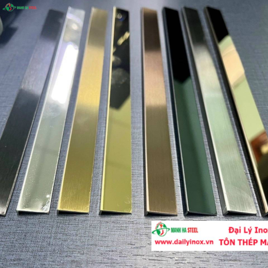 dailyinox.vn cung cấp Nẹp Inox Lập Là 25mm với nhiều loại chất liệu như SUS304, SUS201, SUS316, và nhiều kiểu bề mặt khác nhau như sáng bóng, xước, mạ màu PVD, giúp khách hàng dễ dàng lựa chọn theo nhu cầu thiết kế và tính thẩm mỹ của công trình, đảm bảo sự hài lòng tuyệt đối.