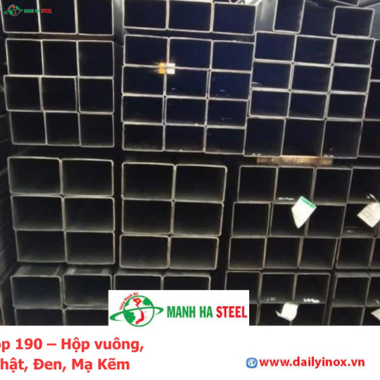 Thép Hộp 190 – Hộp vuông, Chữ Nhật, Đen, Mạ Kẽm