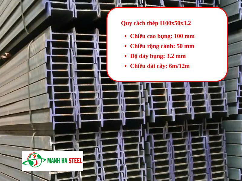 Thép I100 là loại thép hình có mặt cắt ngang dạng chữ I với chiều cao bụng tiêu chuẩn là 100mm. Phổ biến với hai quy cách: I100x50x3.2 và I100x55x4.5x6.5 những quy cách thép hình I nhỏ, thường được sử dụng trong các kết cấu nhẹ, công trình dân dụng,đóng tàu, chế tạo máy, làm sàn thao tác, khung chịu lực nhỏ,... hoặc các dự án yêu cầu tiết kiệm không gian nhưng vẫn đảm bảo khả năng chịu lực cơ bản.